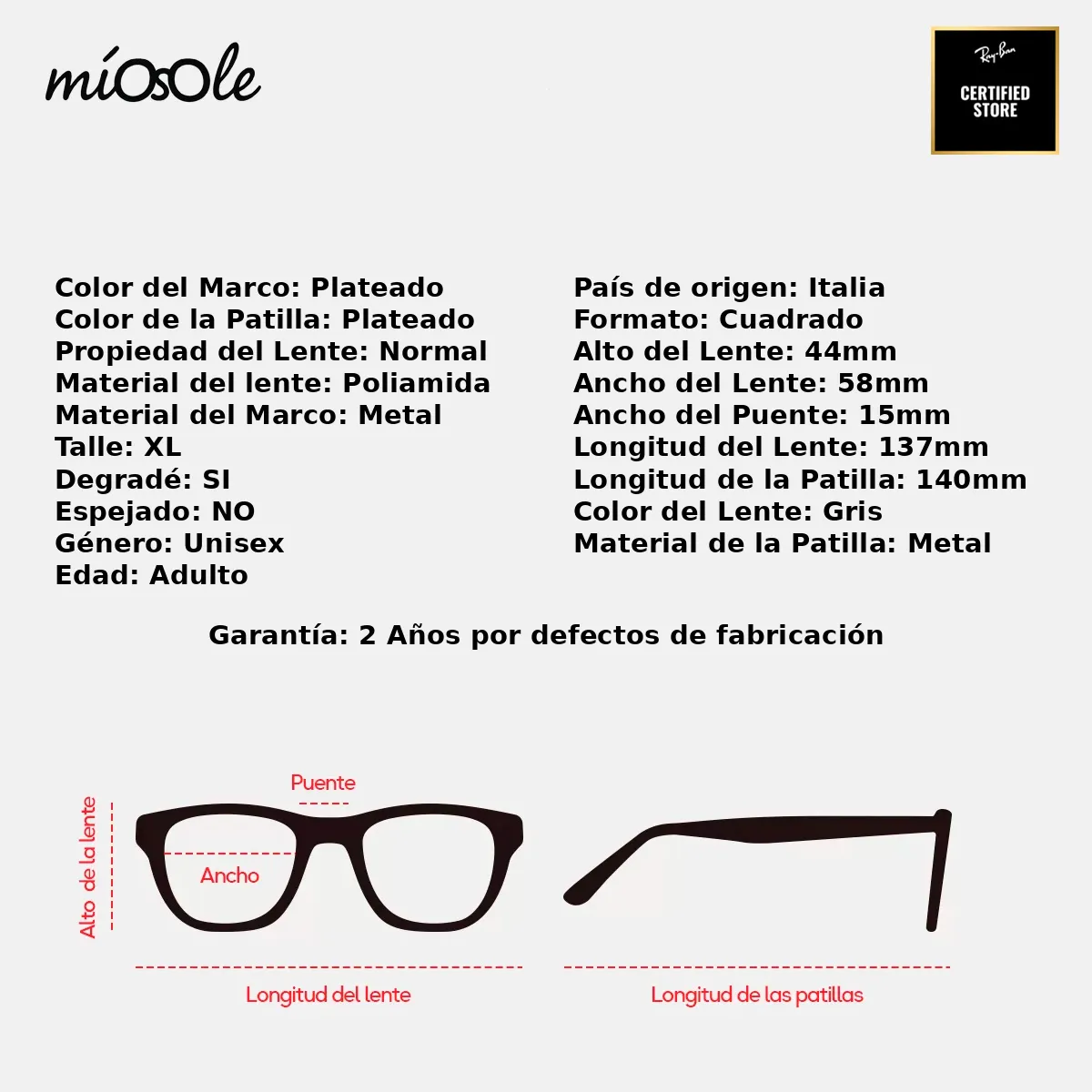 - Color del Lente: Gris