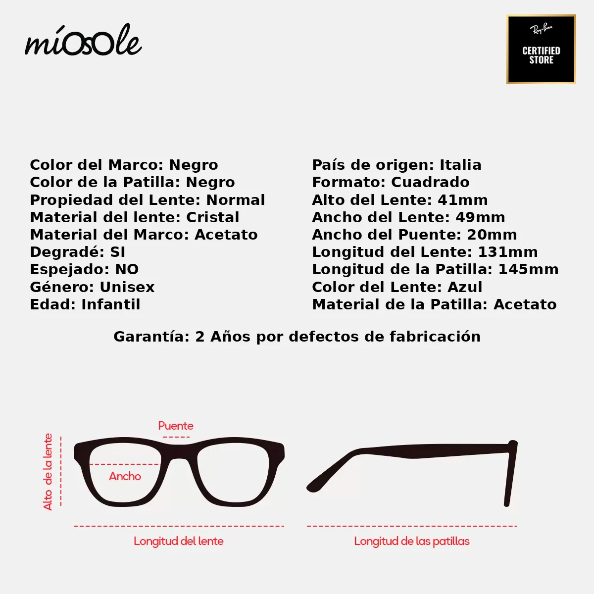 - Material de la Patilla: Acetato