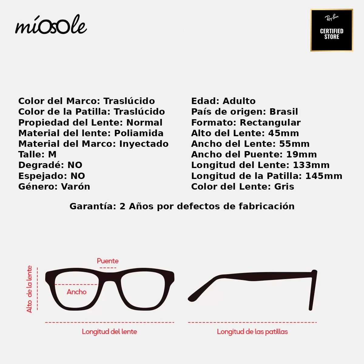 - Color del Lente: Gris